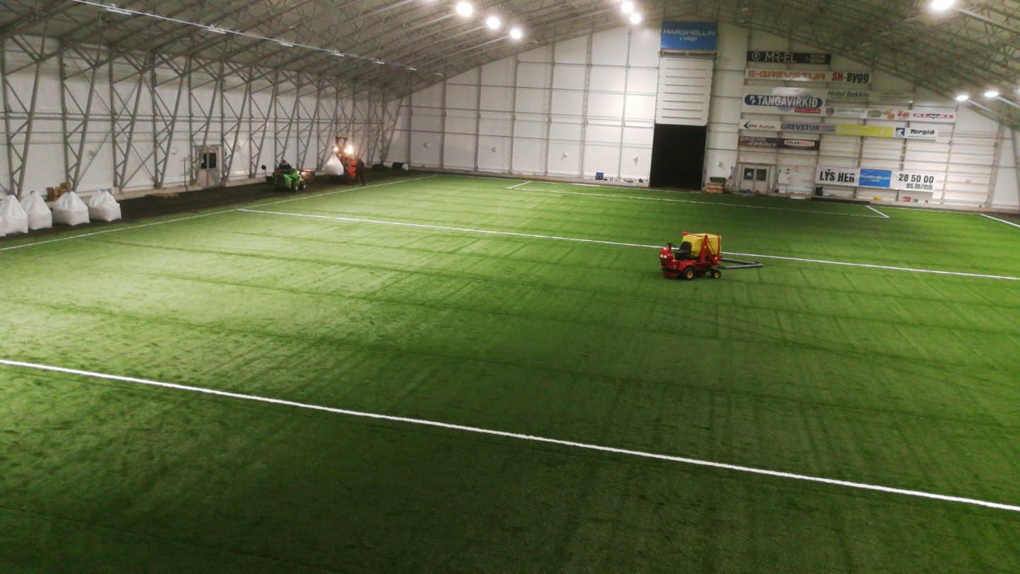 Seinastu dagarnir hevur verið arbeitt við at leggja á graslíkisvøllin í Marghøllini.