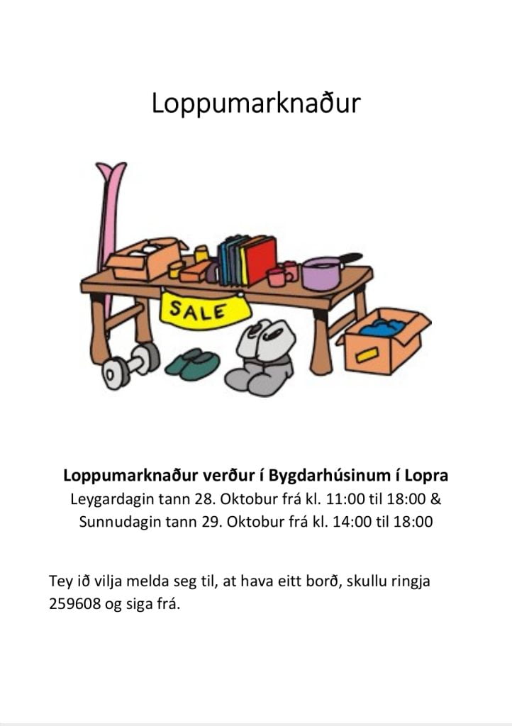 Loppumarknaður í Bygdarhúsinum í Lopra