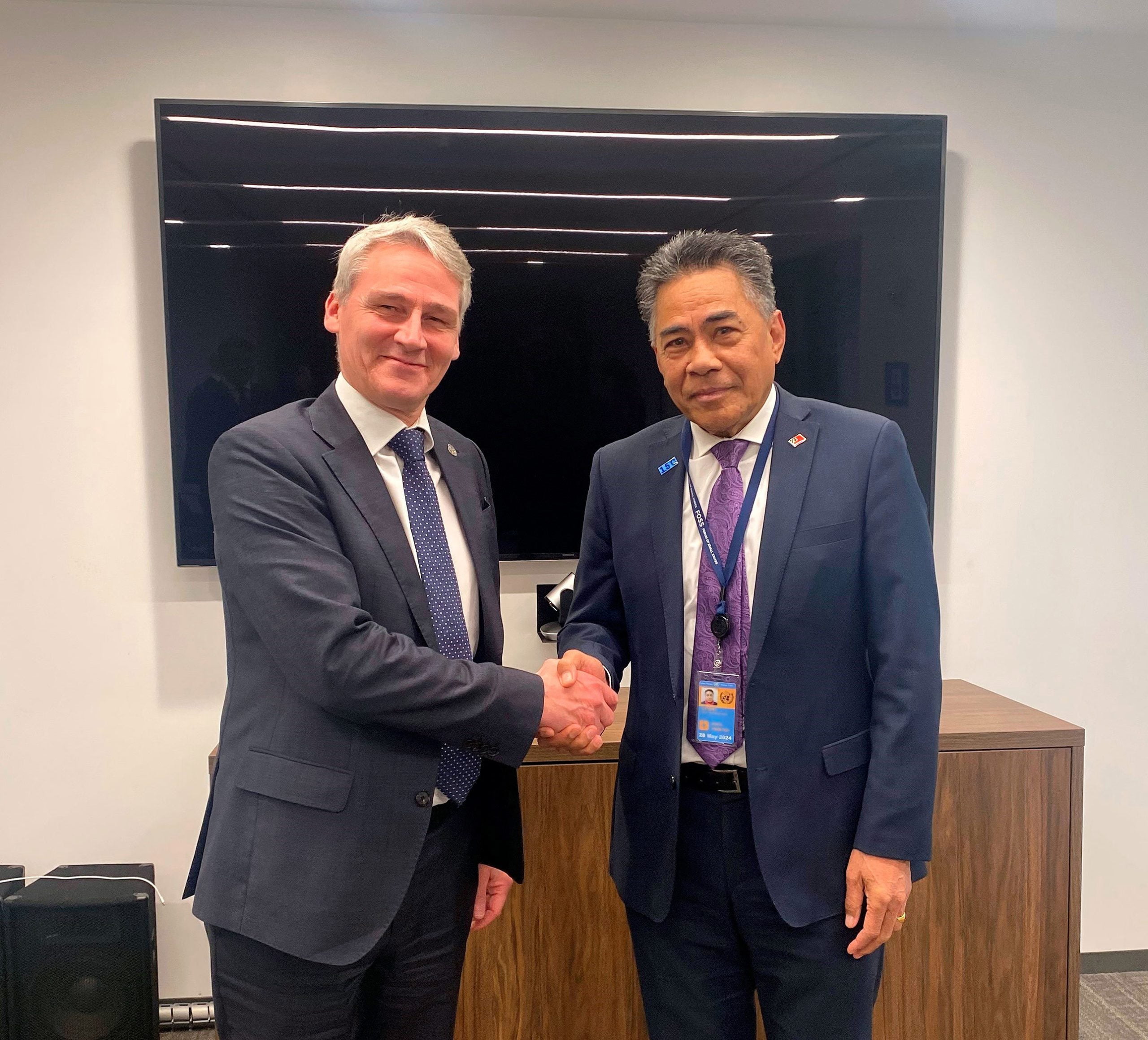 Á fundi í New York hitti landsstýrismaðurin í uttanríkis og vinnumálum, Høgni Hoydal, forsetan í Alliance of Small Island States (AOSIS).