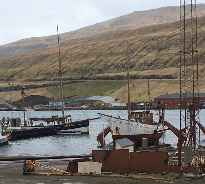 Thorshavn á beding á Vágs Skipasmiðju og sluppin Johanna TG 326 við kaj.