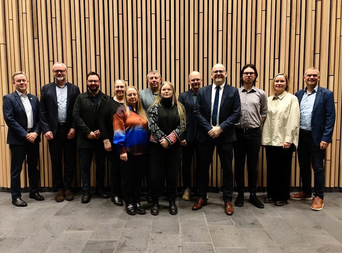 Á myndini frá vinstru: Johan Hansen, fyrisitingarstjóri, Martin Zachariasen, rektari, Sigurd Christiansen, adjunktur, Ragnheiður H. Magnúsdóttir, stjóri og serfrøðingur í tøkni og íverksetan, Sonja Olsen, ph.d.-vísindastarvsfólk, Niels Winther, stjóri í Vinnuhúsinum, Harriet F. R. Dam, lesandi, Ólavur Ellefsen, stjóri, Djóni Nolsøe Joensen, landsstýrismaður, Sigmund Zachariasen, lesandi, Annika H. Davidsen, adjunktur, og Regin D. Hammer, ph.d.-vísindastarvsfólk.