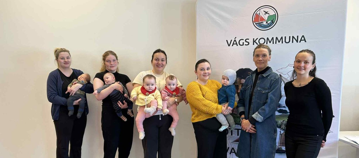 Vágs kommuna: Um middagsleitið í dag komu átta nýføðingar á vitjan í Miðlatúni. Hesir nýggju vágbingarnir fingu gávu frá Vágs Kommunu.