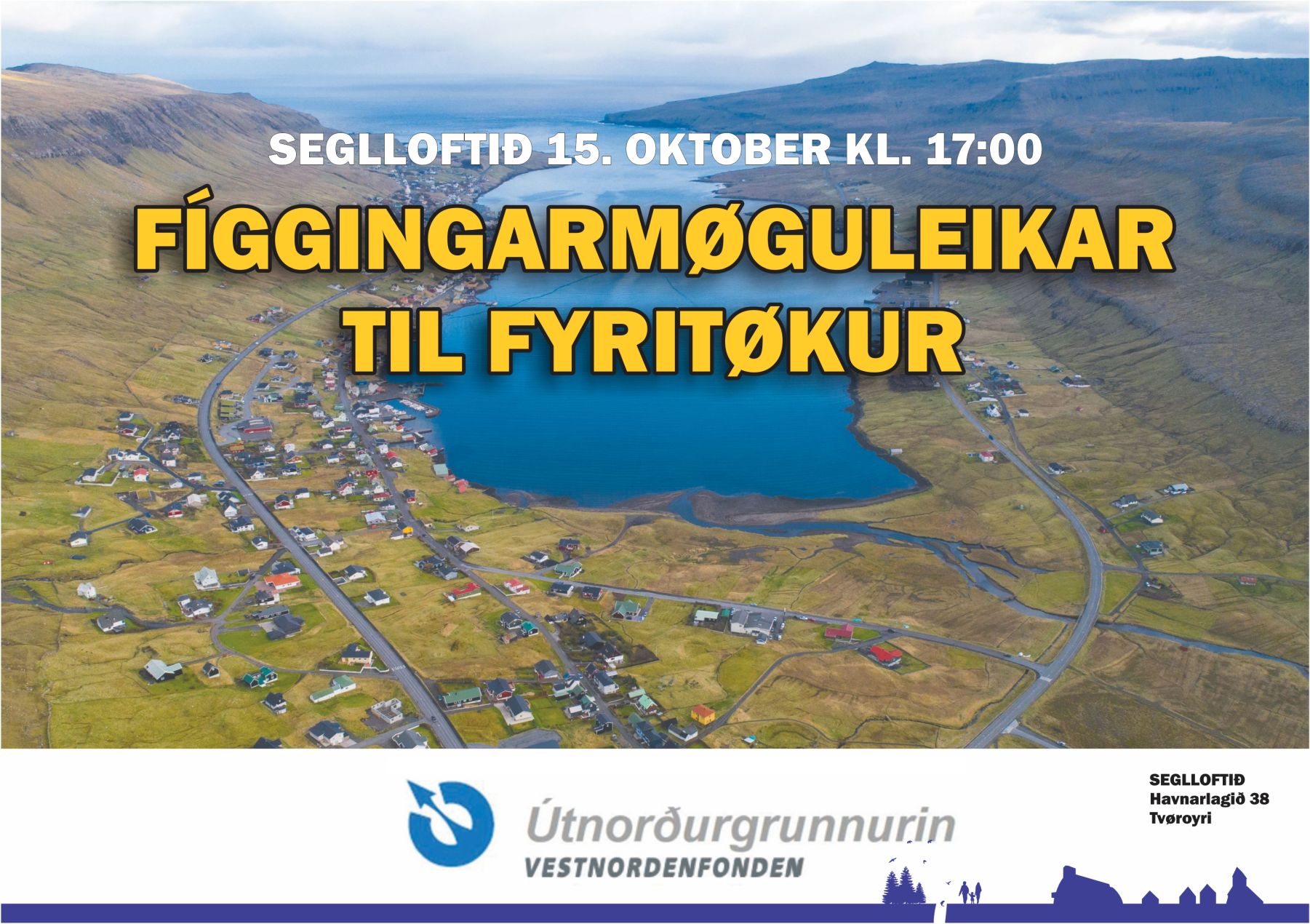 So hevur tú brúk fyri fígging í næstum, ella bert áhugaður í at hoyra meira um møguleikar fyri tína fyritøku, so legg leiðina framvið Seglloftið á Tvøroyri 15. oktober.