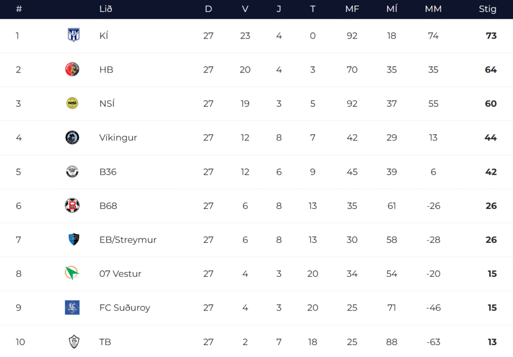 Endaliga støðan í Betrideildini 2025 gjørdist hendan.