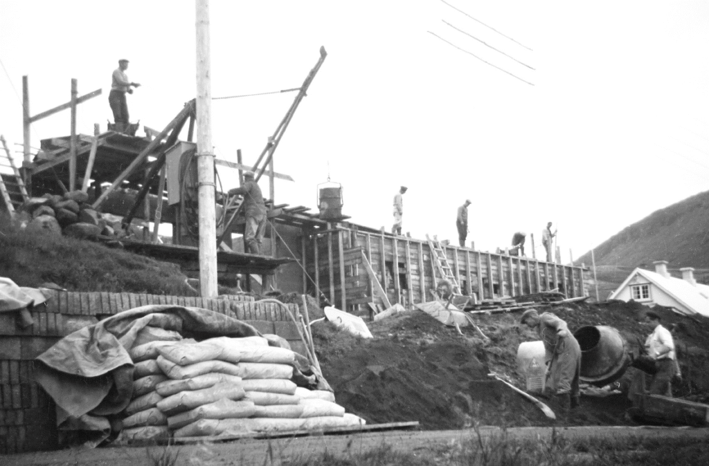 Her verður grundin stoypt til húsið, har vakthavandi á Fossáverkinum kundu búgva. Myndin er tikin í 1958. Mynd: Bent Restorff.