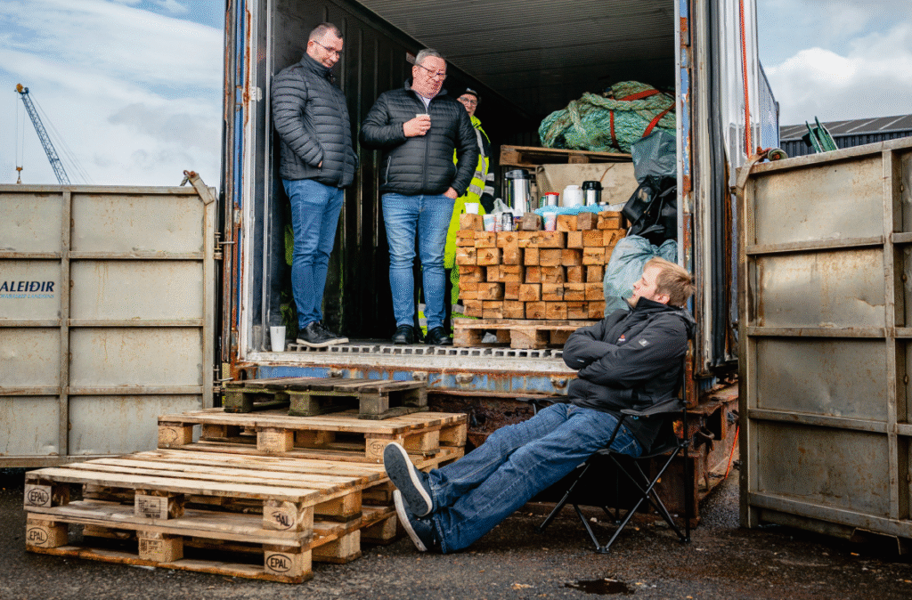 Verkfalsvaktir við ‘Nyhavnina’ í Havn tann 6. juni. Mynd: Bjarni Árting Rubeksen.