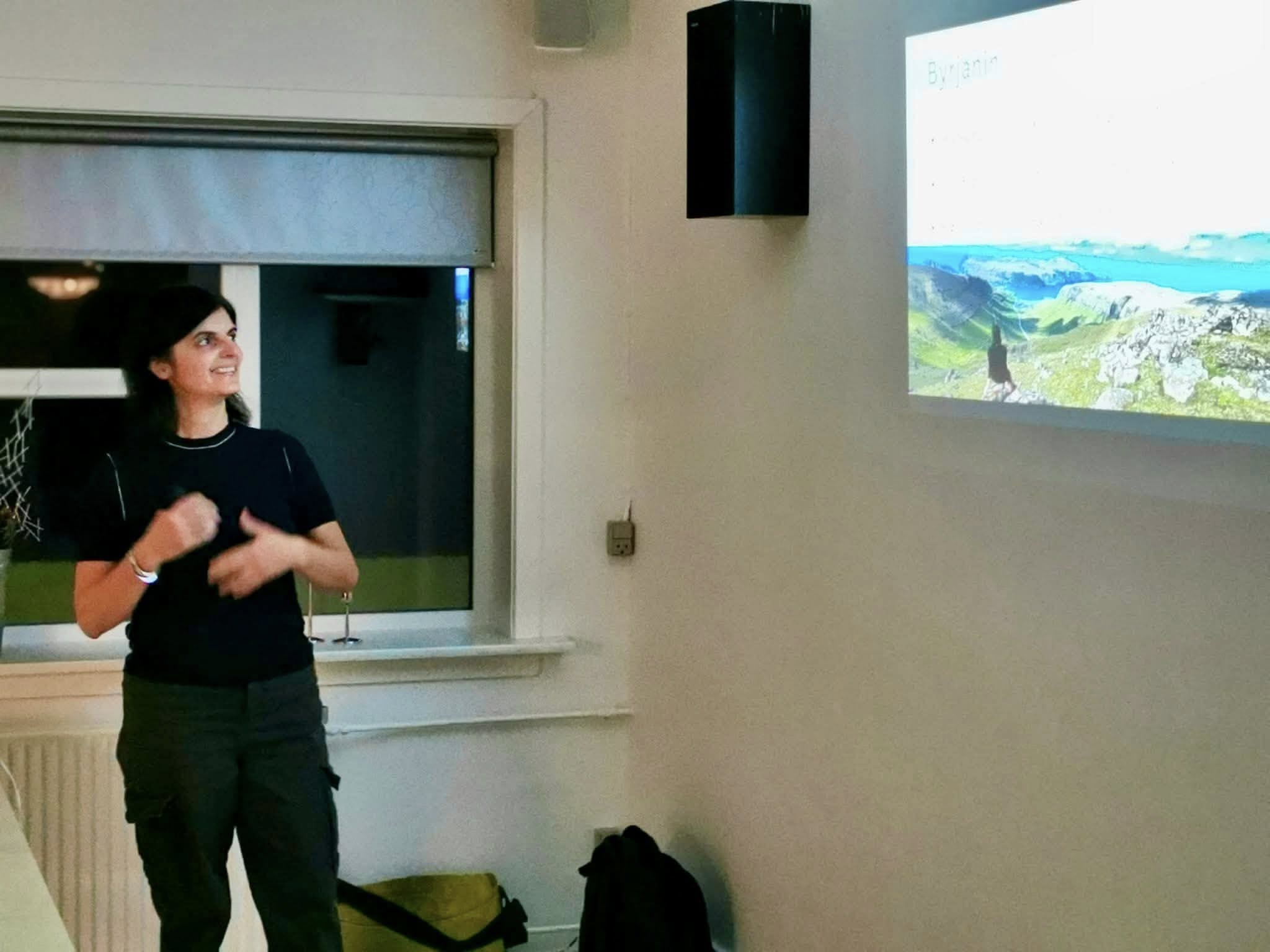 Arousiak Hammer úr Hvalba, sum eigur og rekur fyritøkuna Faroe.escapes hevði eina sera áhugaverda framløgu um hvussu hon miðvíst hevur arbeitt við at fara inn í ferðavinnuna og hevur sett á stovn egna fyritøku. Eisini greiddi hon frá hvørja tænastur hon bjóðar og hvørjar royndir hon hevur við útlendsku ferðafólkunum, sum hava vitjað – og at fokus er á fáa ferðandi til Suðuroynna, sum veruliga vilja leggja pengar eftir sær. Til ber at lesa meiri um tænasturnar frá Faroe.escapes á heimasíðuni https://faroeescapes.com