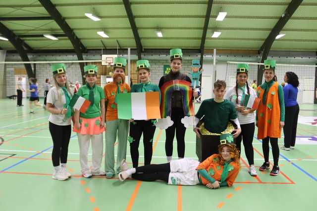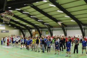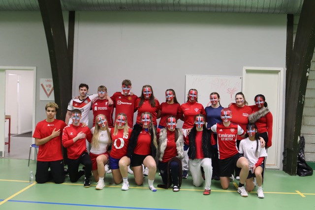 Eftir frálíka døgurðan, ið var borðreiddur í VB-húsinum, fóru øll, bæði næmingar og starvsfólk úr øllum skúlunum, undir stóru flogbóltskappingina í Vágs høll.