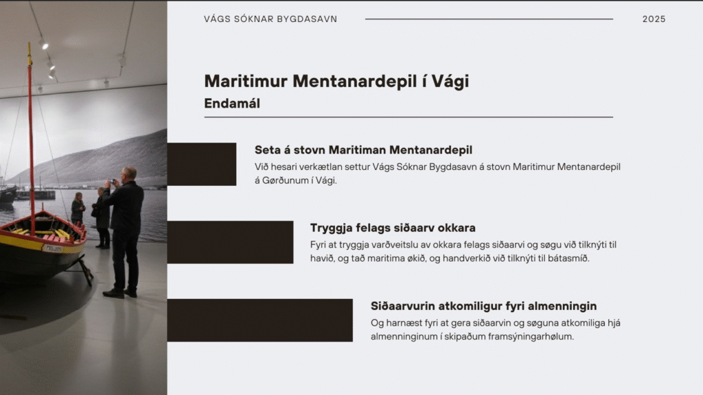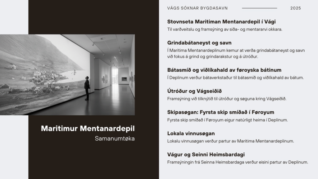 Nú nógv negativ miðlaumrøða bleiv um eina sera spennandi verkætlan um Maritiman Mentanardepil í Vági, tí at Dennis Holm, sum hevur verið sjálvboðin í Vágs Sóknar Bygdasavni í 25 ár, viðgjørdi umsóknina í Fíggjarnevndin, sum sjálvandi er sera óheppi, so vilja vit vísa á, hvat verkætlanin handlar um.