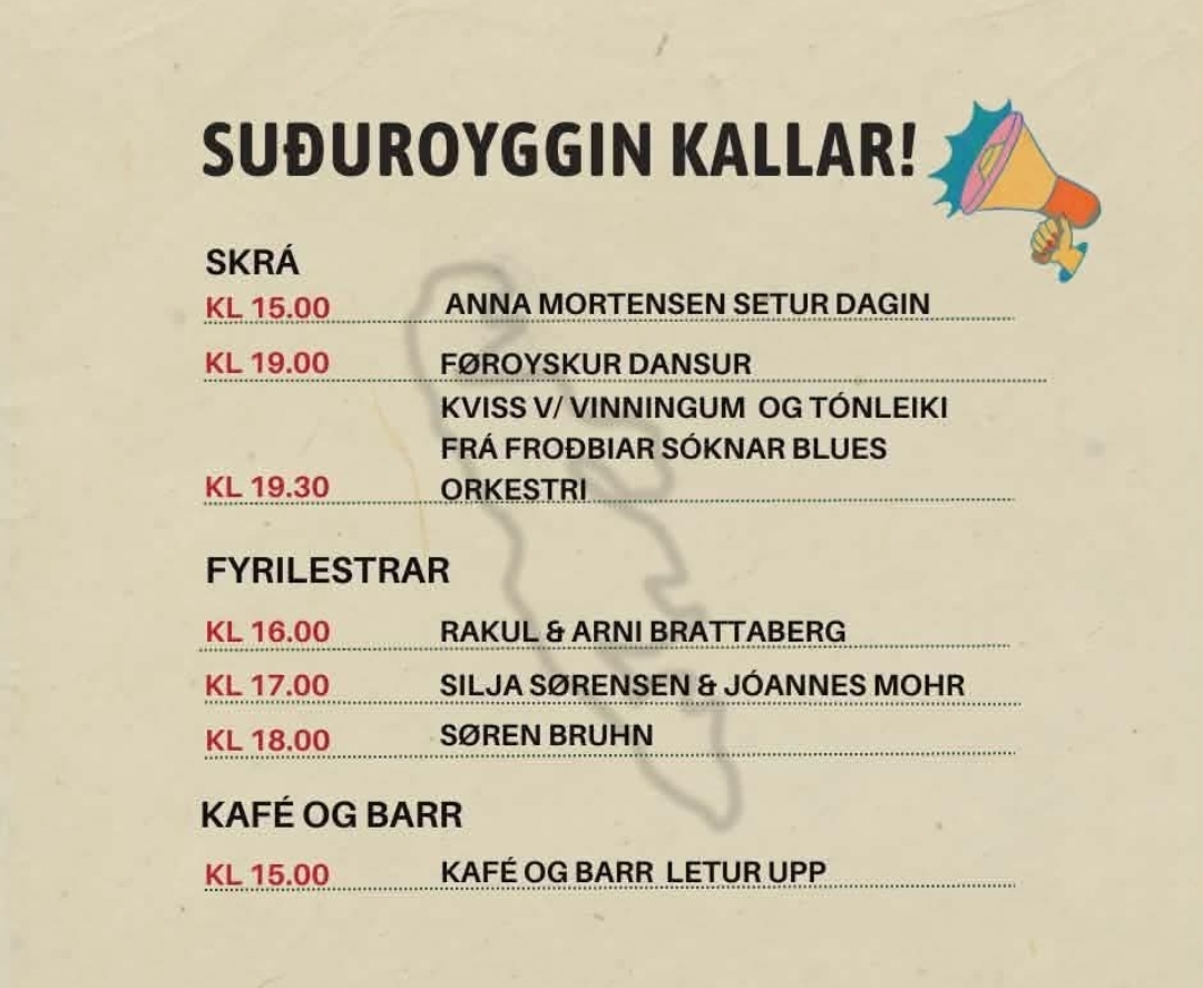 Í dag, mánadagin 29. Desember er tiltakið Suðuroyggin kallar! í Salt frá kl. 15 til kl. 21.