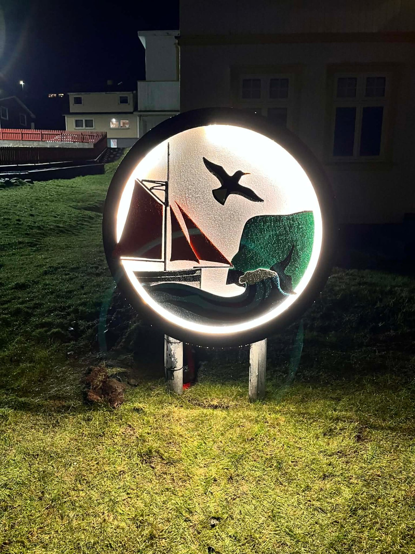Kanska hevur onkur av tykum lagt til merkis, at skeltið hjá kommununi, sum stendur frammanfyri kommunuskrivstovuna, er nýmálað og lýst upp við ljósi.