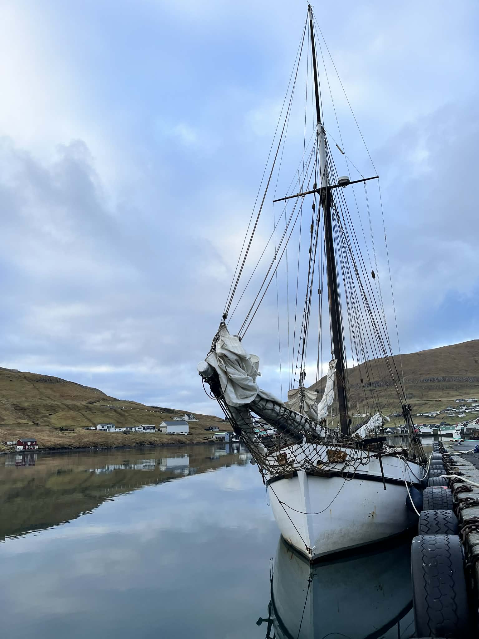 Aldargamla seglskipið Lola of Skagen vitjar í Vági. Hetta er fyrsta seglskipið, sum vitjar í ár – góðar fýra mánaðir áðrenn seglskip og seglbátar vanliga koma.