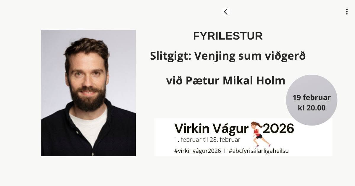 Fyrilesturin verður tórskvøldið 19. februar klokkan 20.00 í Miðlatúni.