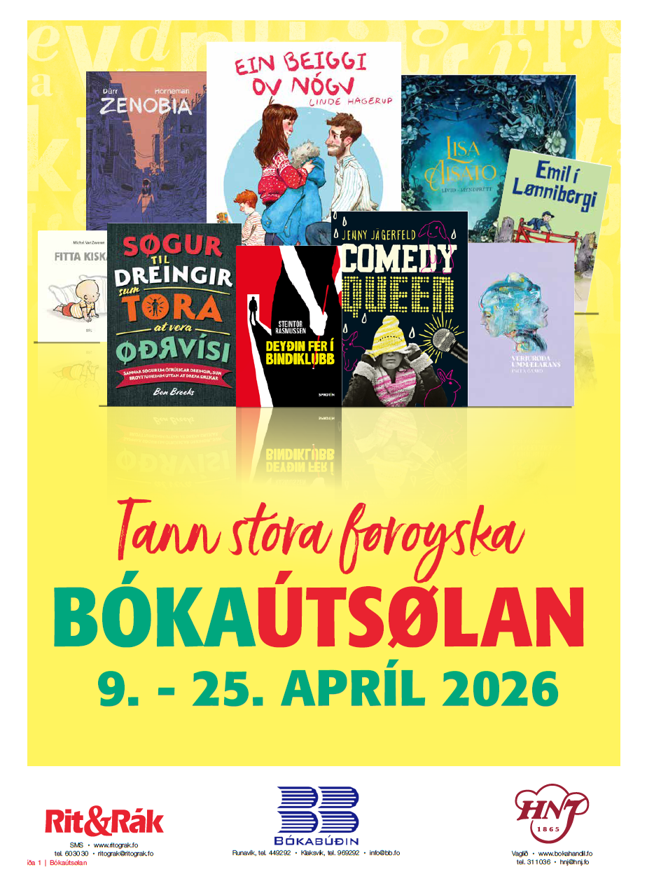 Tann stóra føroyska bókaútsølan er frá 9. – 25. apríl 2026 í øllum bókahandlum kring landið.