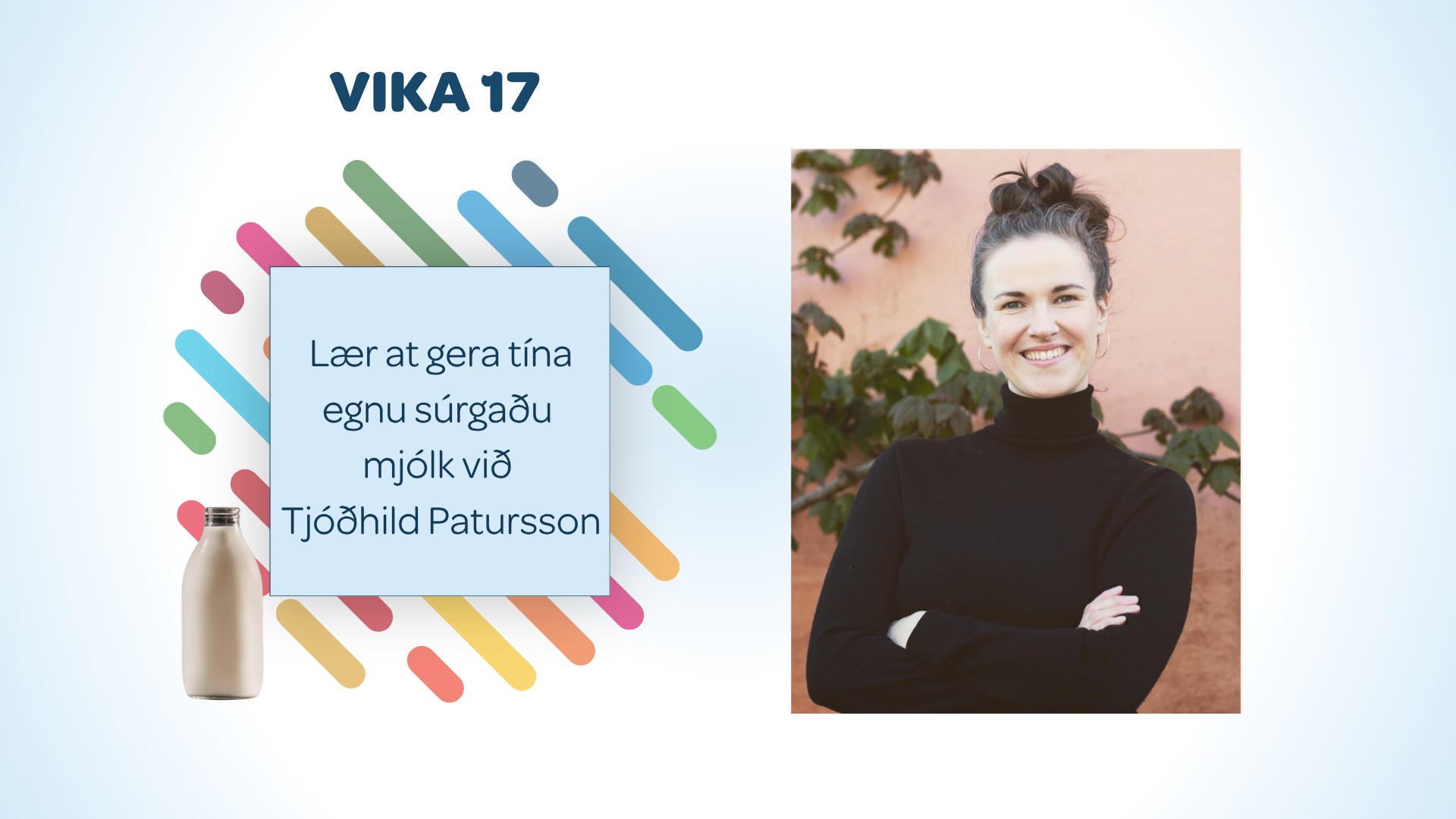 Síðani fer hon at vísa, hvussu fólk lættliga kunnu gera sær sína egnu súrgaðu mjólk, og tey sleppa eisini at royna seg og fáa ein startara við heim, so at tey sleppa í gongd. Havi gjarna eina lítla krukku við.