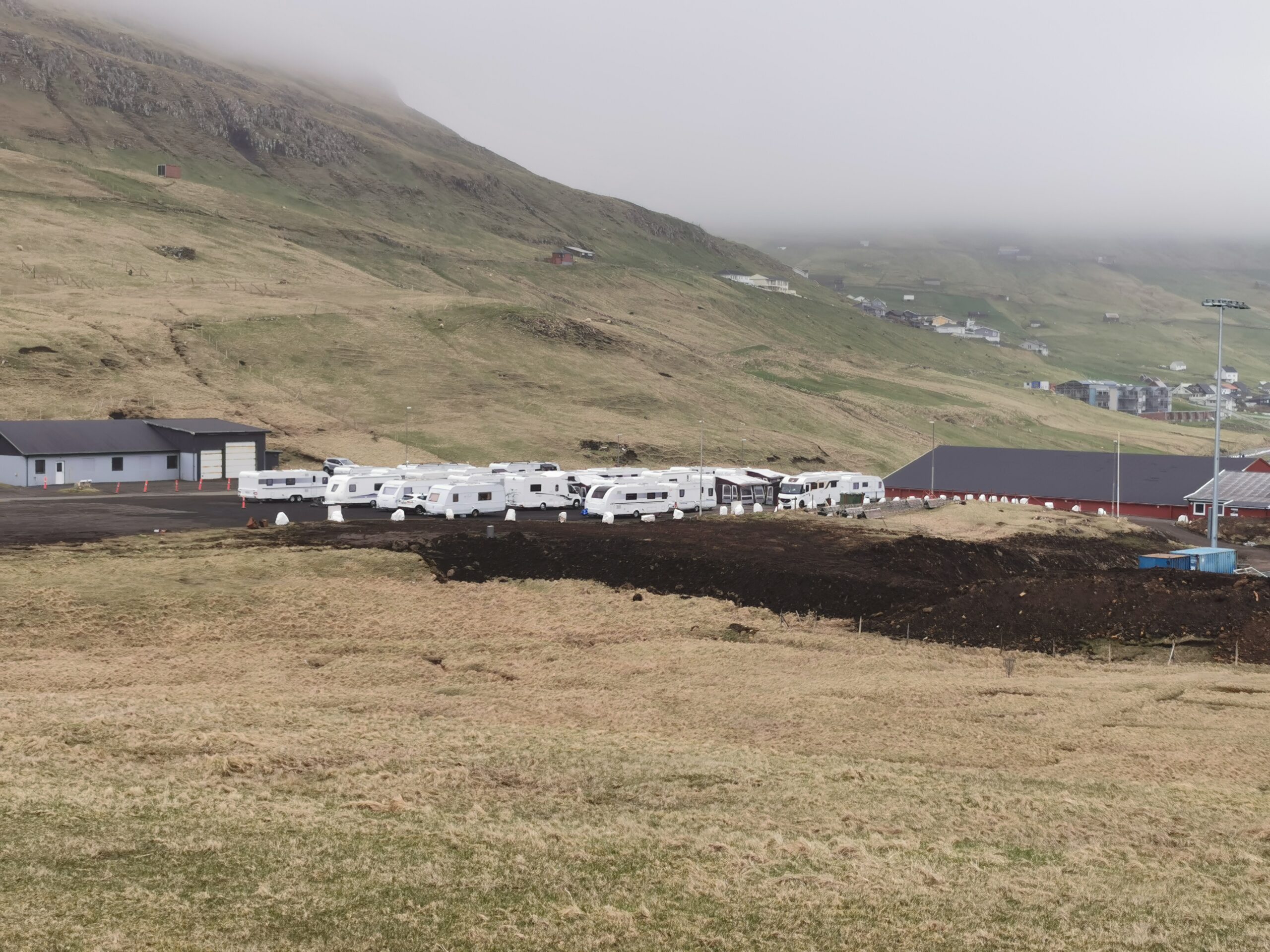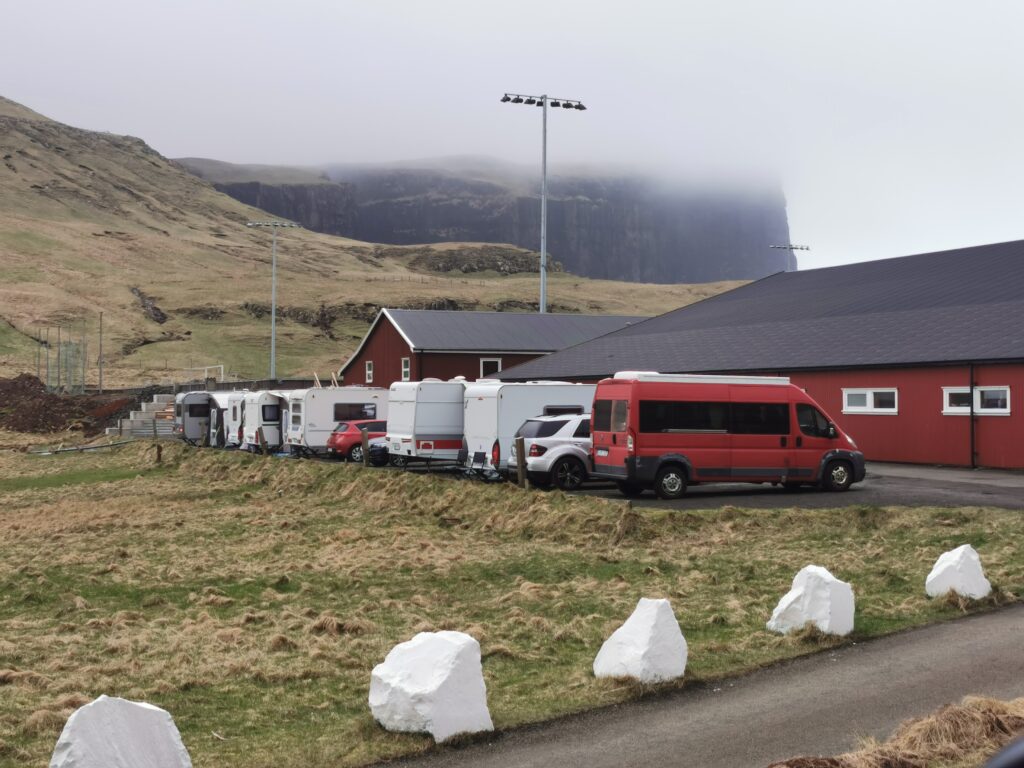 Kampingplássið vesturi á Eiðinum – eystanfyri Vágs Høll og vestafyri høllina – er nú við at fyllast og tað Smyril er komin suður seinnapartin, eru teir flestu kampingvognarnar, um ikki allir, komnir uppá pláss og eru klárir til Dansibands-vikuskiftið í Vági.