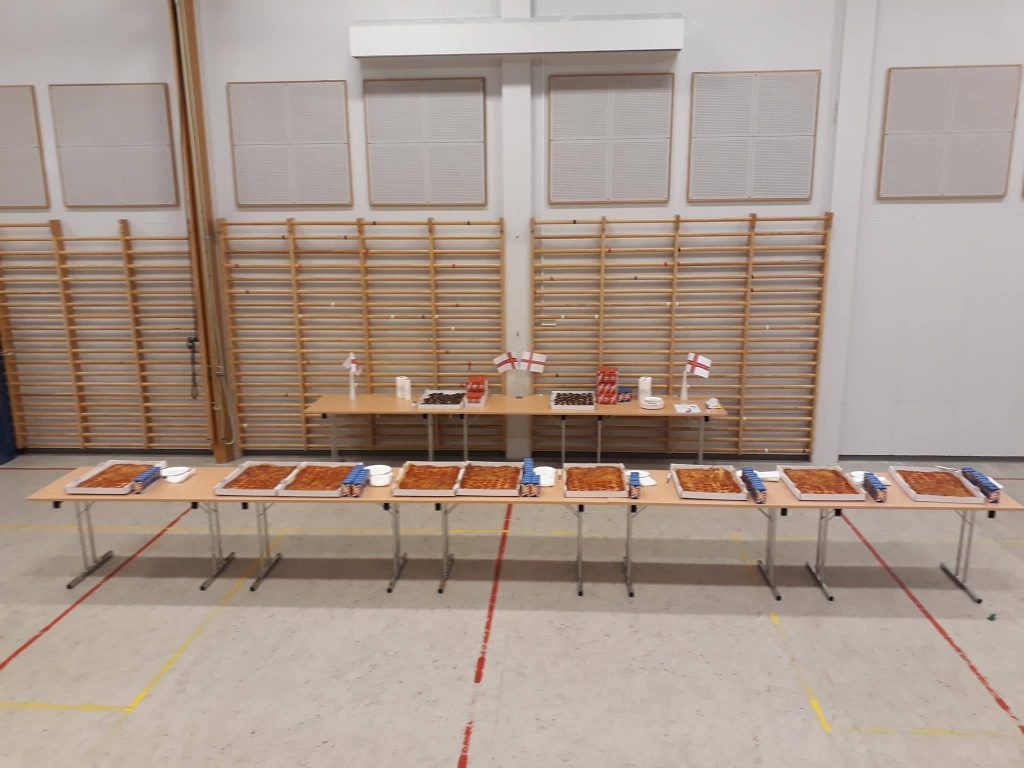Sigrun Toftheyggj fortaldi stutt um skúlans søgu, og síðani varð farið inn í fimleikarhøllina, har øll fingu pitsa, muffins og sunkist, og eisini vóru nakrir sangir sungnir.